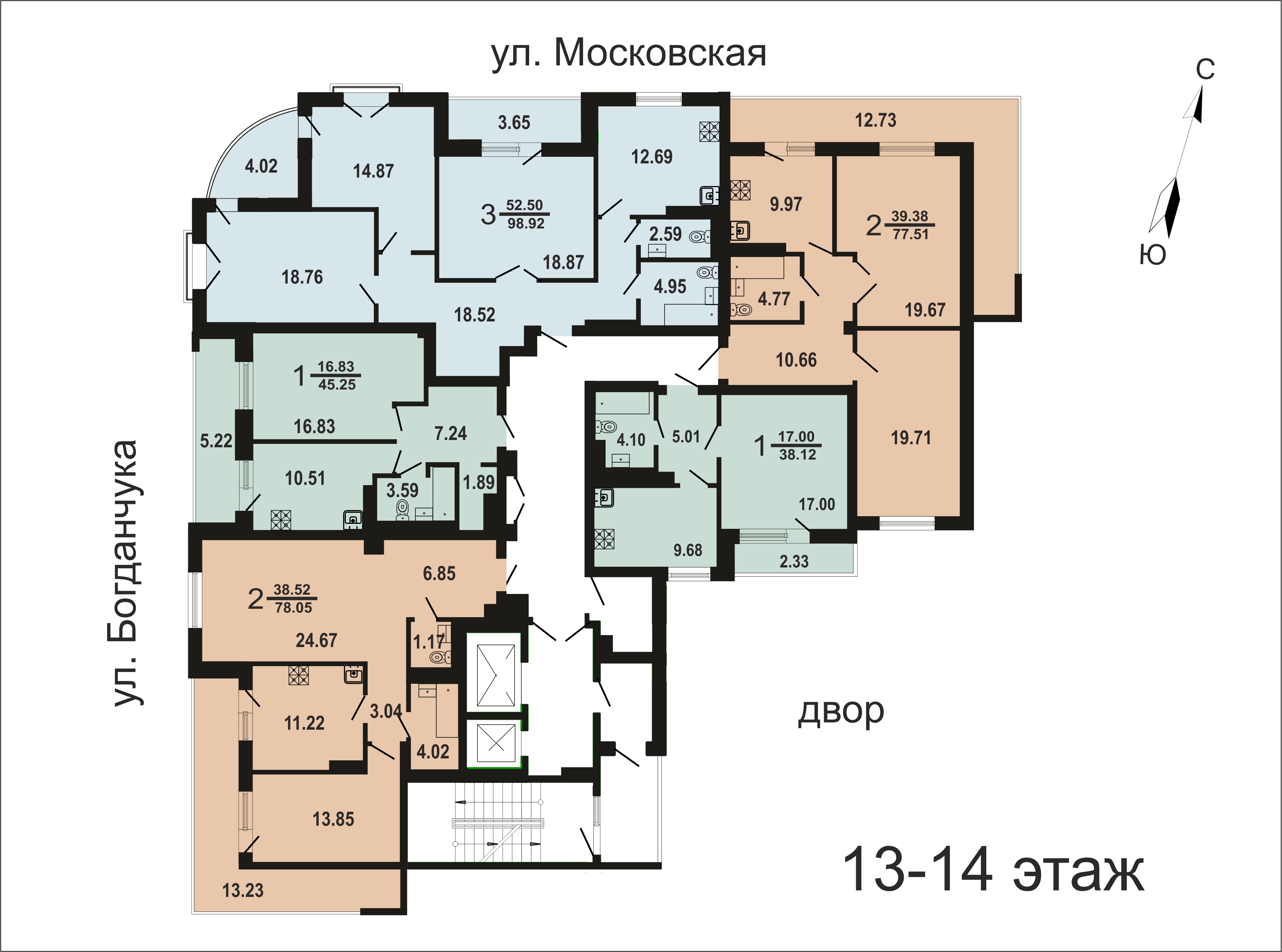 | Этаж 14 | 115 | 116 | 117 | 119 | 118 | |||||||||||||||||||||